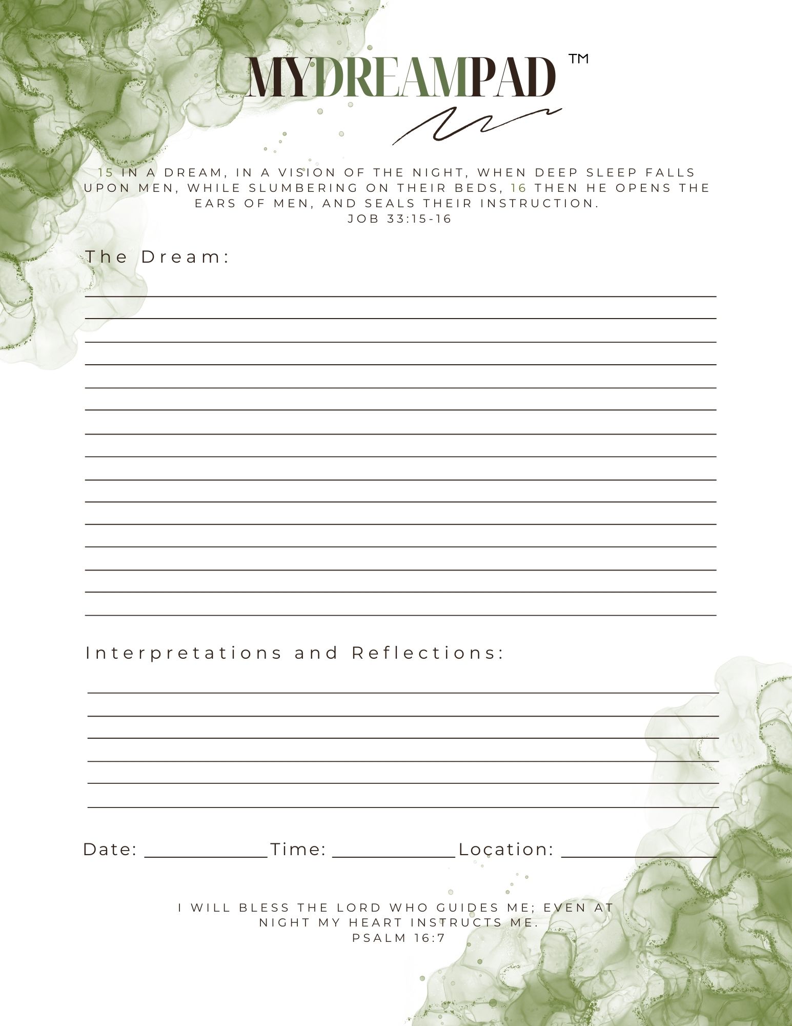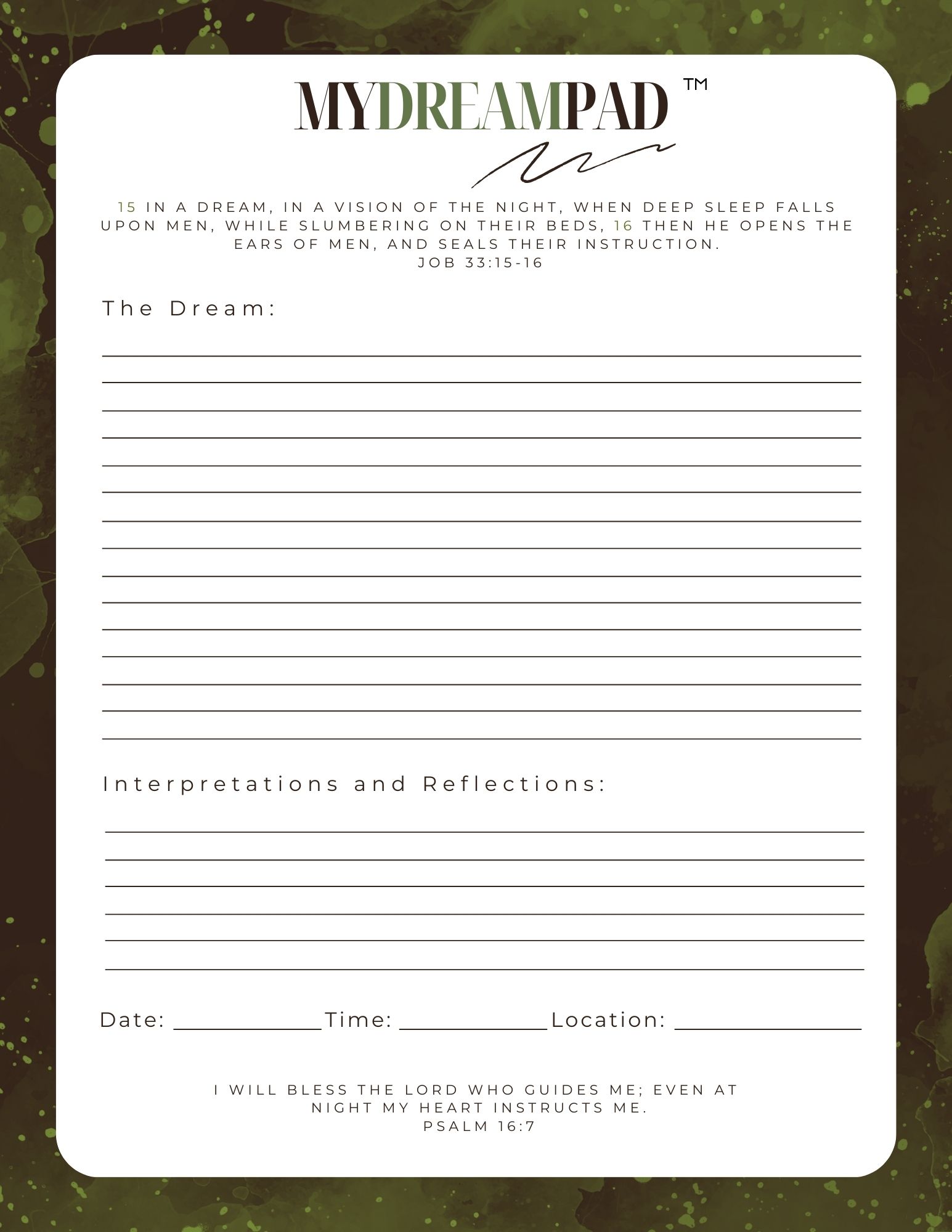 My Dream Pad Does God speak to you through your dreams? This pad will allow you to record and track your dreams with space to write out the interpretation as well. Product# MDP1 Product# MDP2